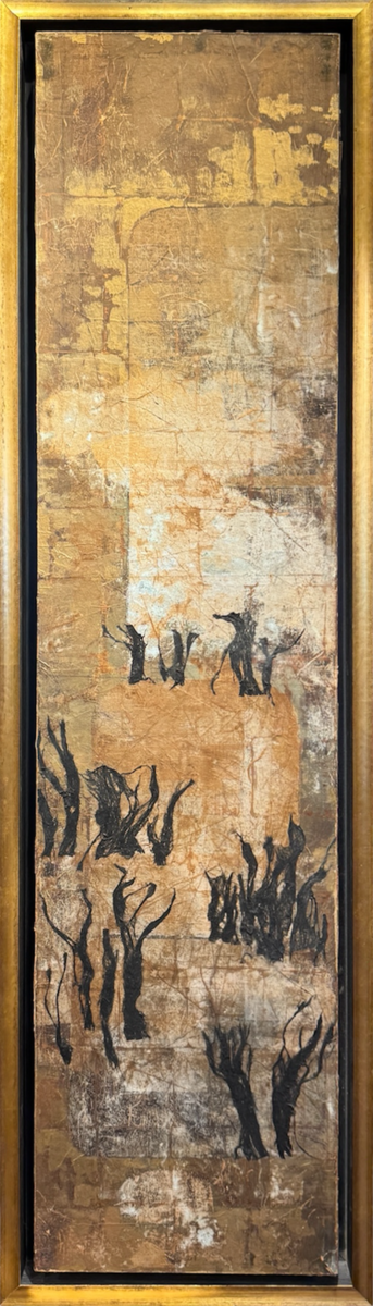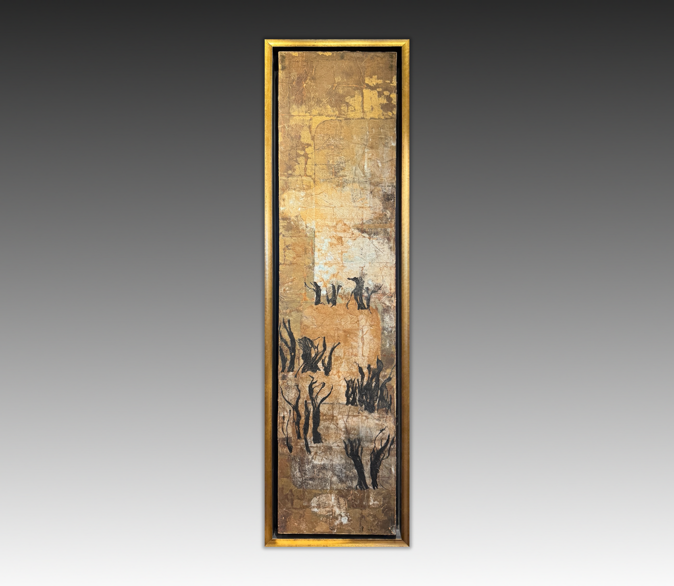 Tseng’s artwork may look like abstract shapes painted with Chinese ink and color on paper, using traditional brush strokes and dots, without clear subjects. But upon closer look, you can spot landscapes and other subtle shapes hidden within the misty designs. In the 1950s, she began experimenting with layering gold or silver foil, which she called “dsui.” Her work was part of a traveling exhibition organized by the Smithsonian Institution and was displayed in various museums and art centers across the United States in 1955.