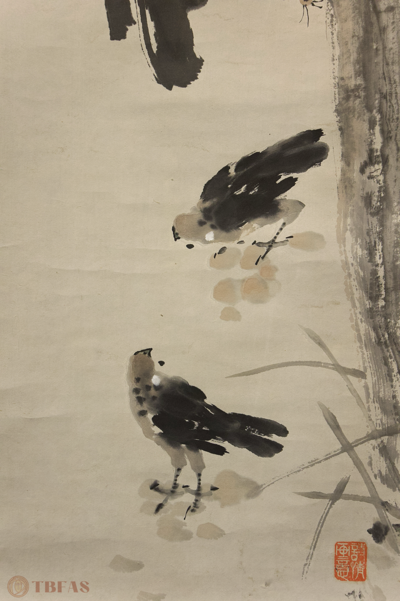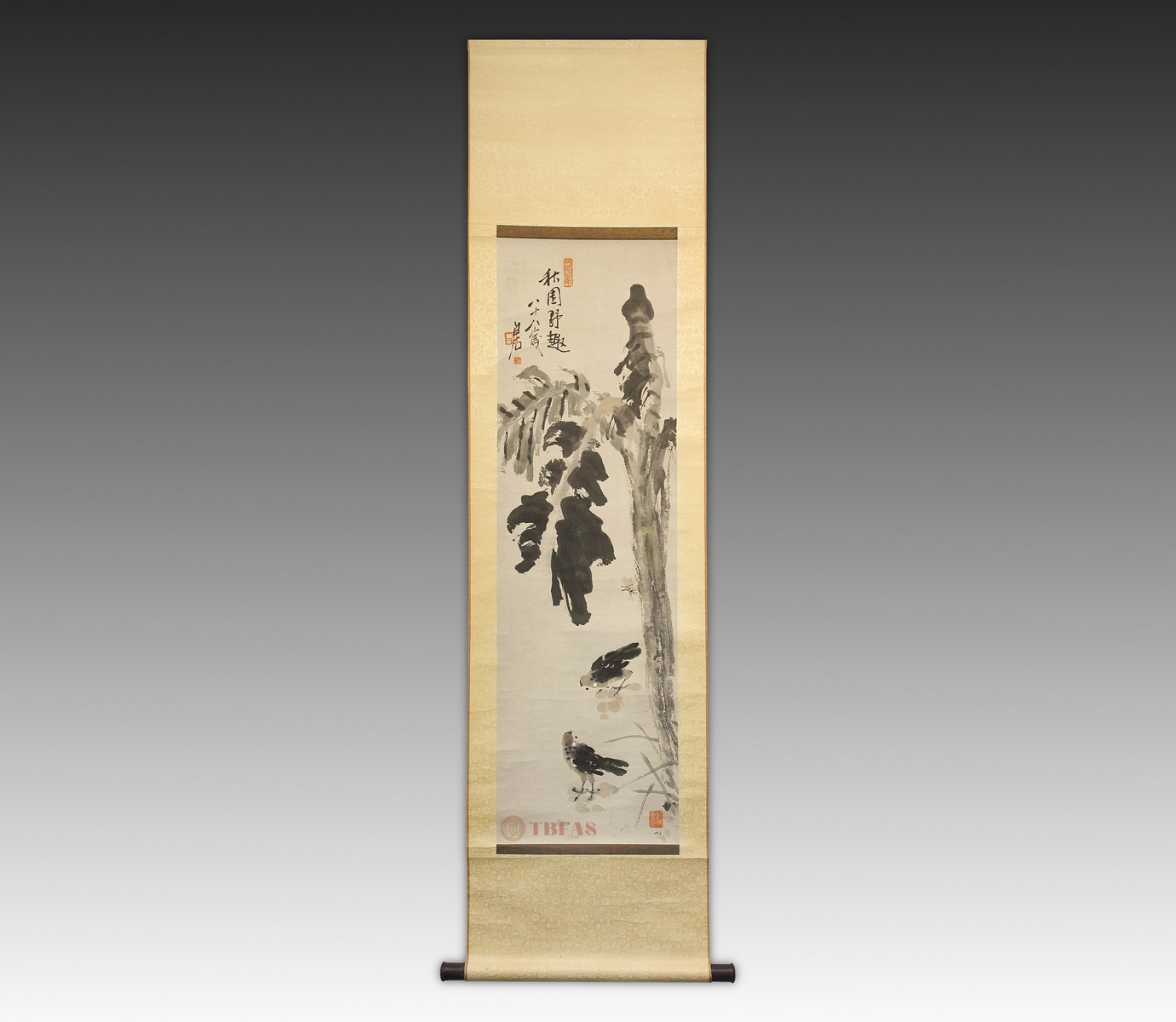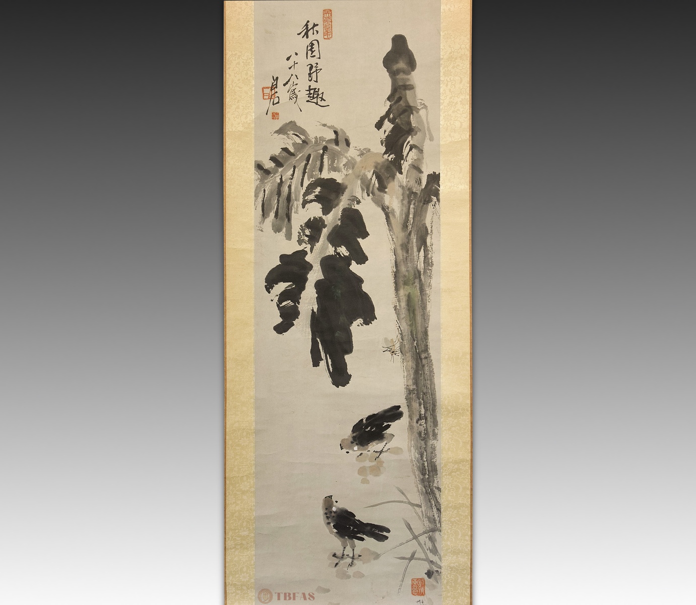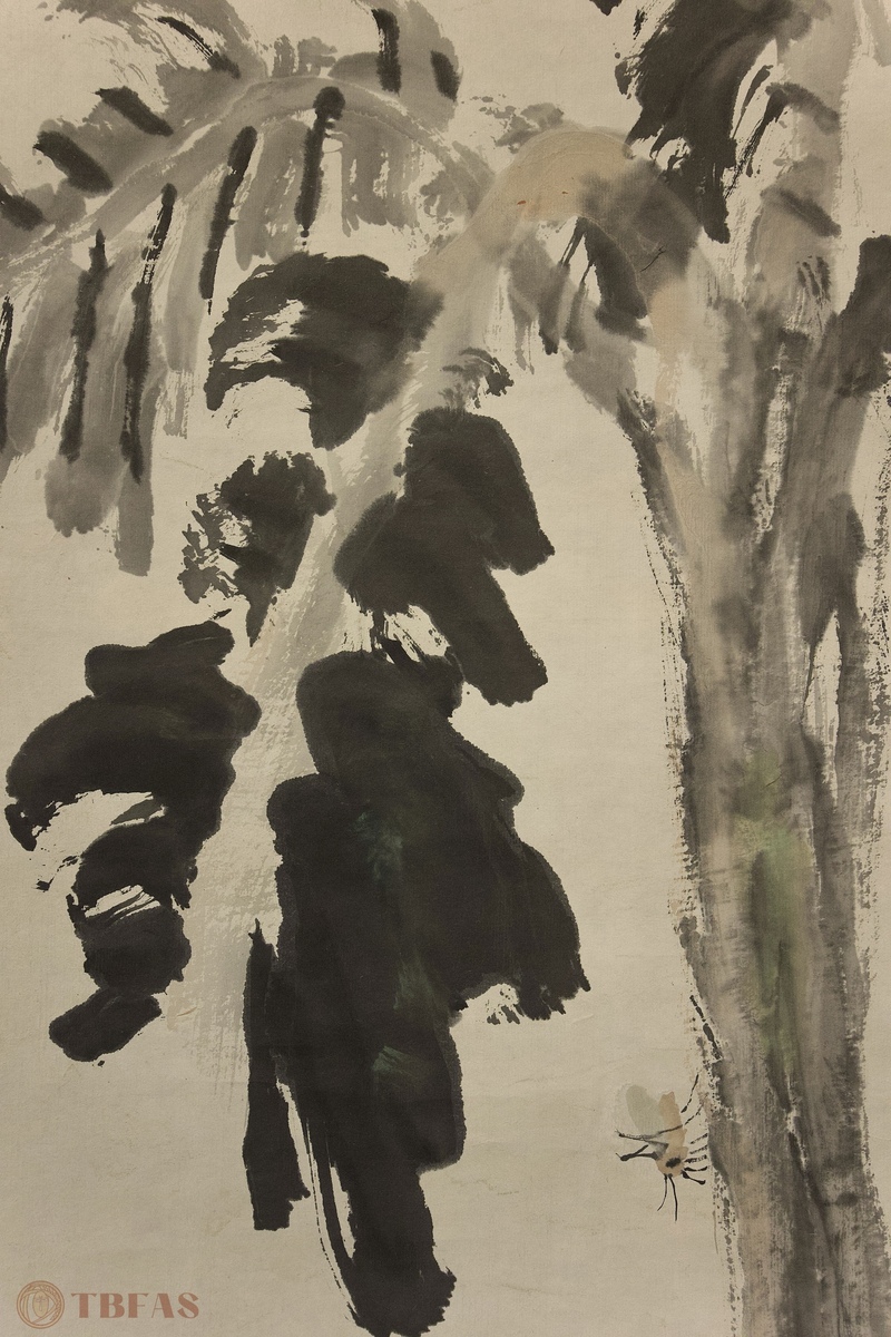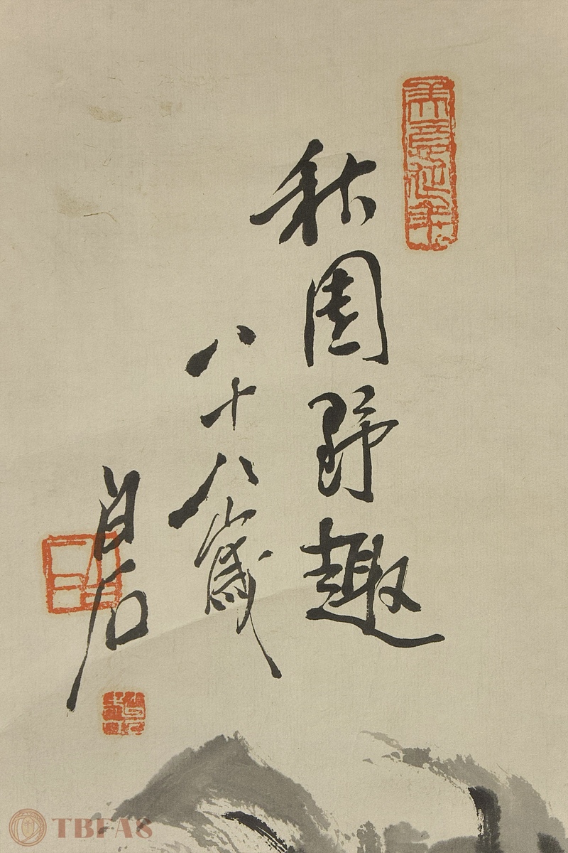 山水。当代,水墨绢本立轴。质良。