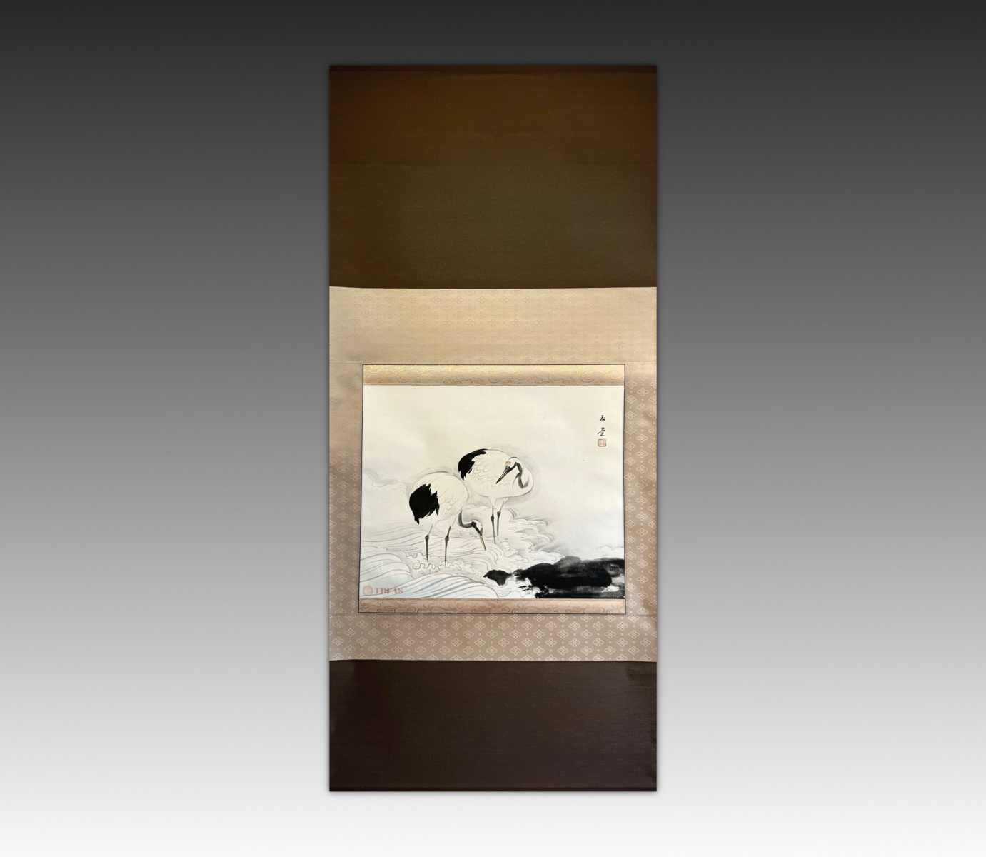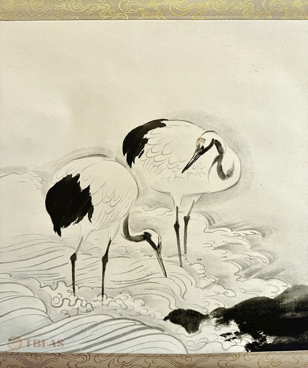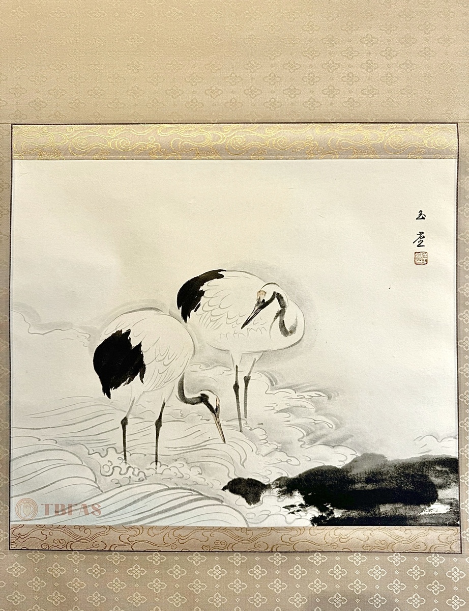 双鹤。江户 – 明治(19世纪)。水墨纸本立轴。品相优。