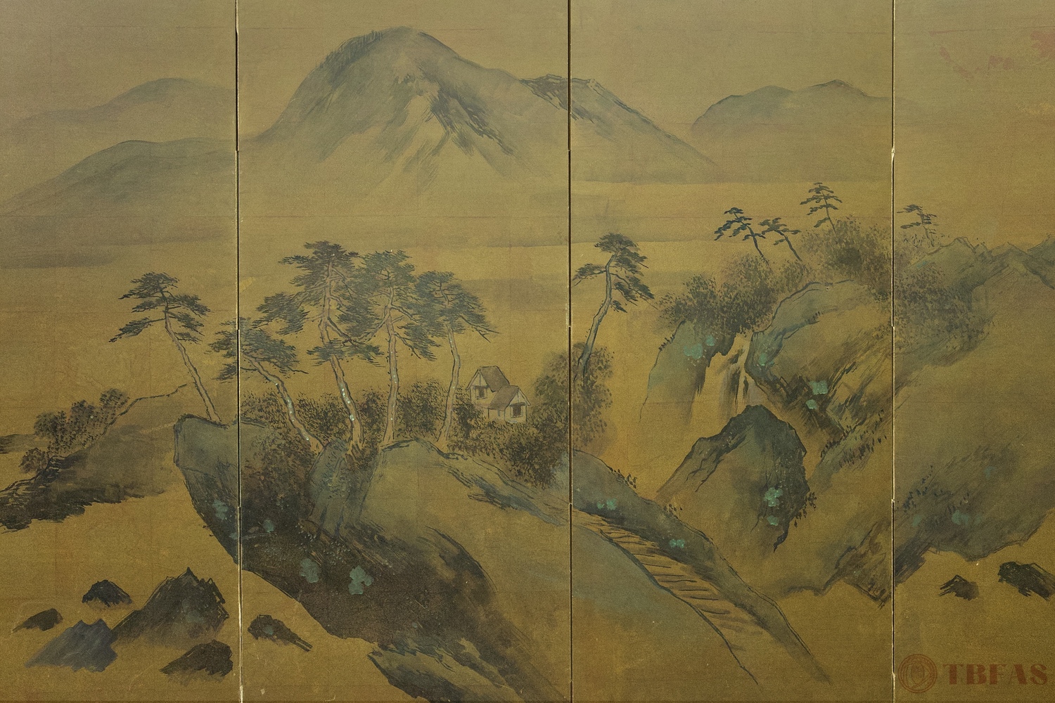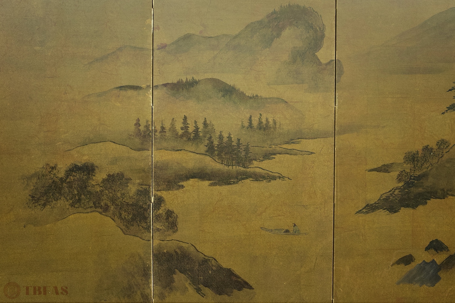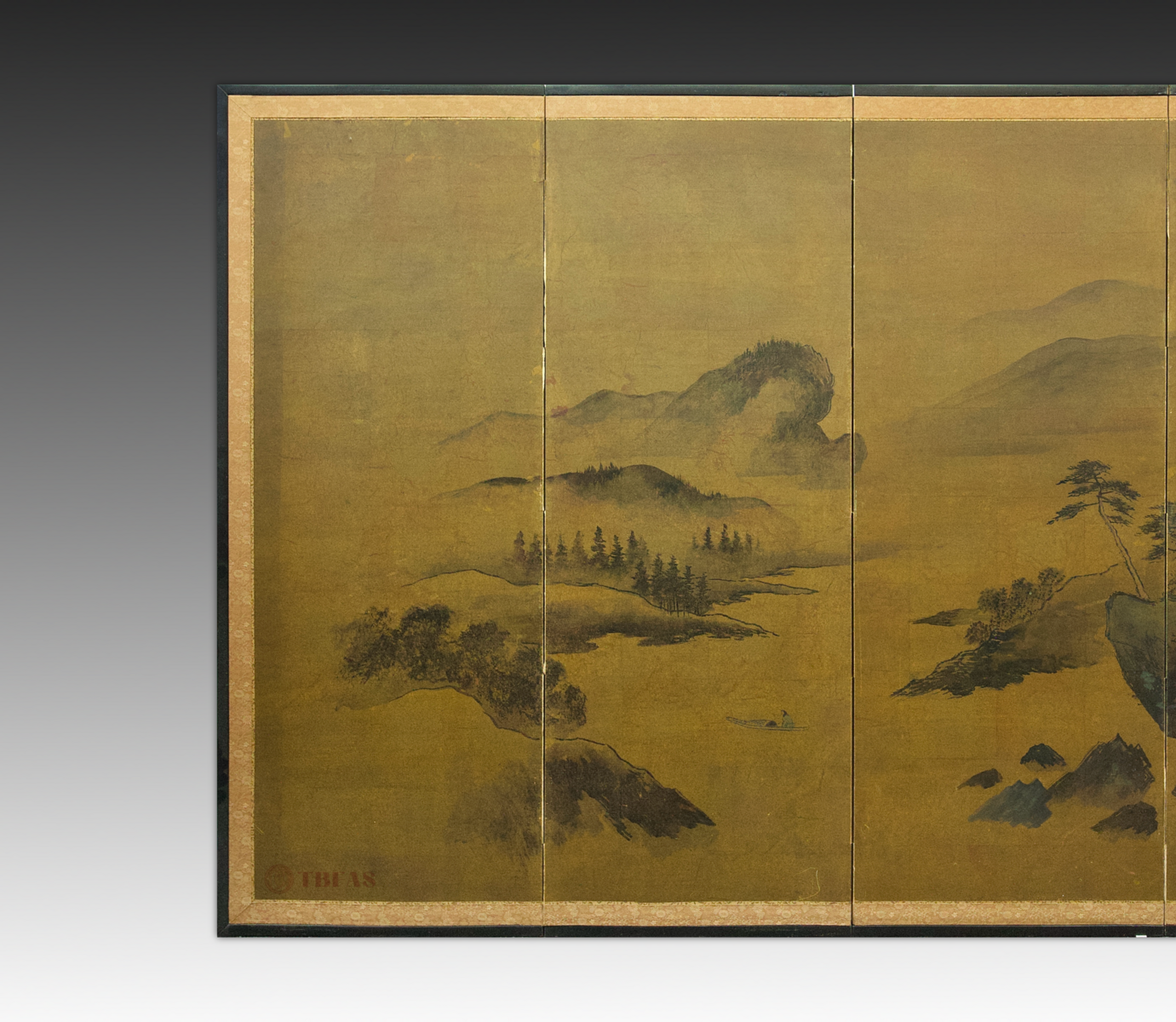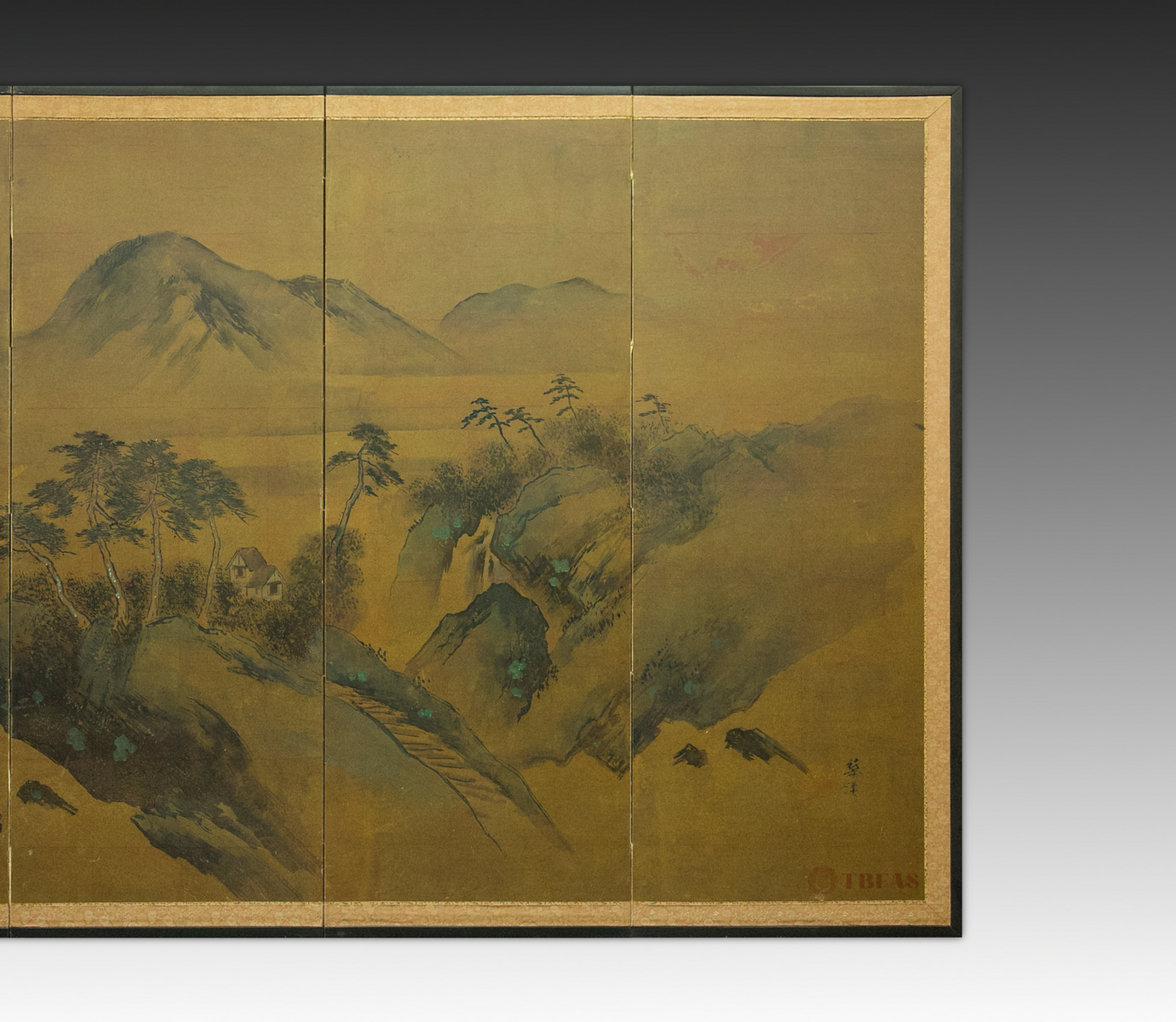 山水。江户 – 明治(19世纪)。设色纸本六摺屏风。状况优。