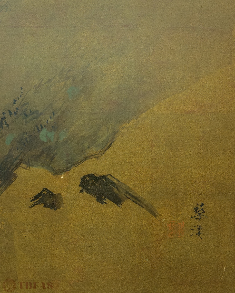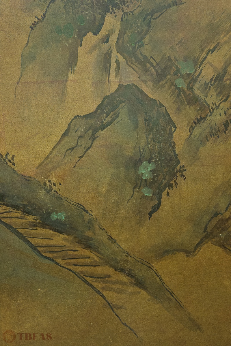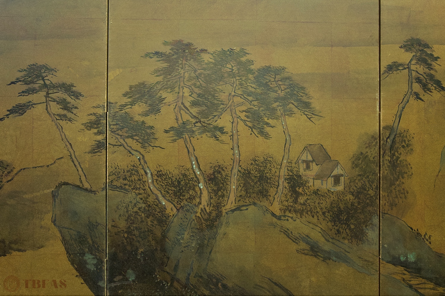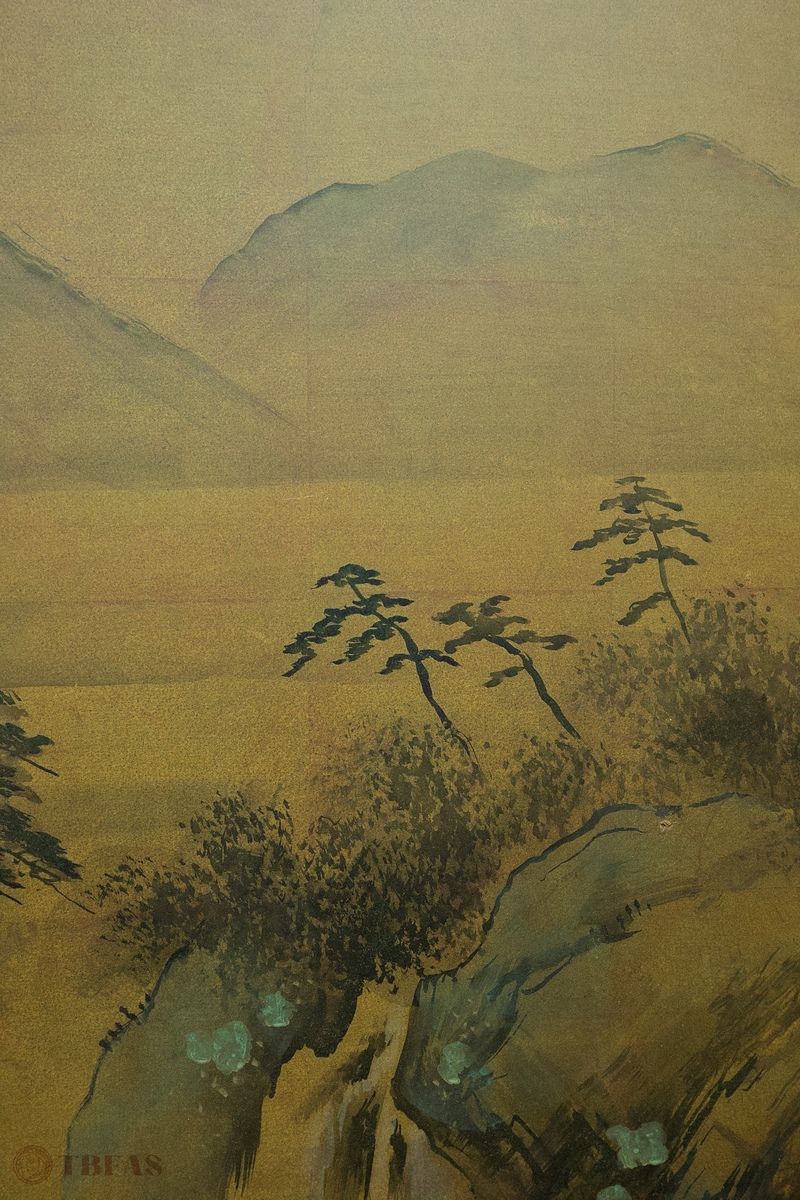 山水。江户 – 明治(19世纪)。设色纸本六摺屏风。状况优。