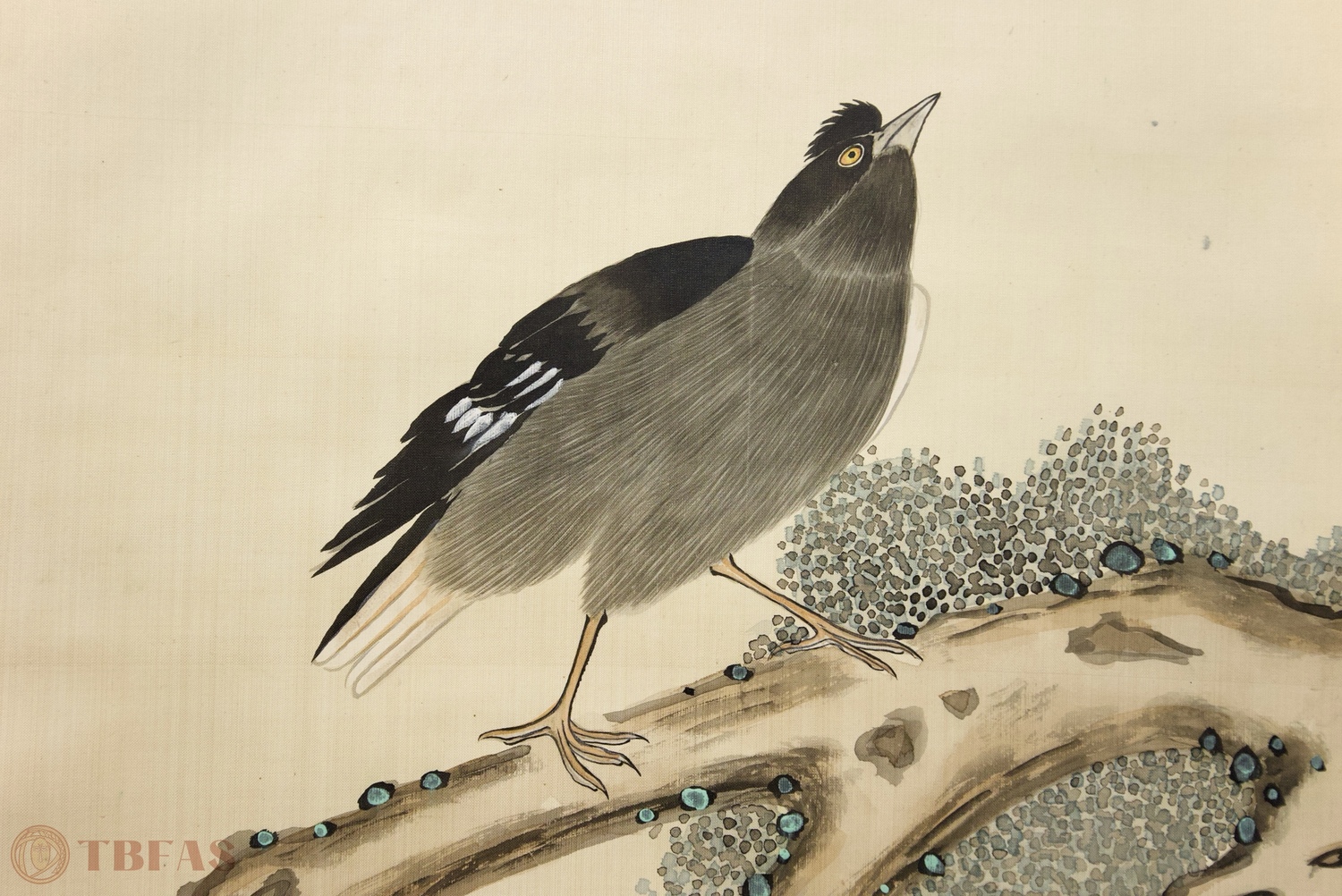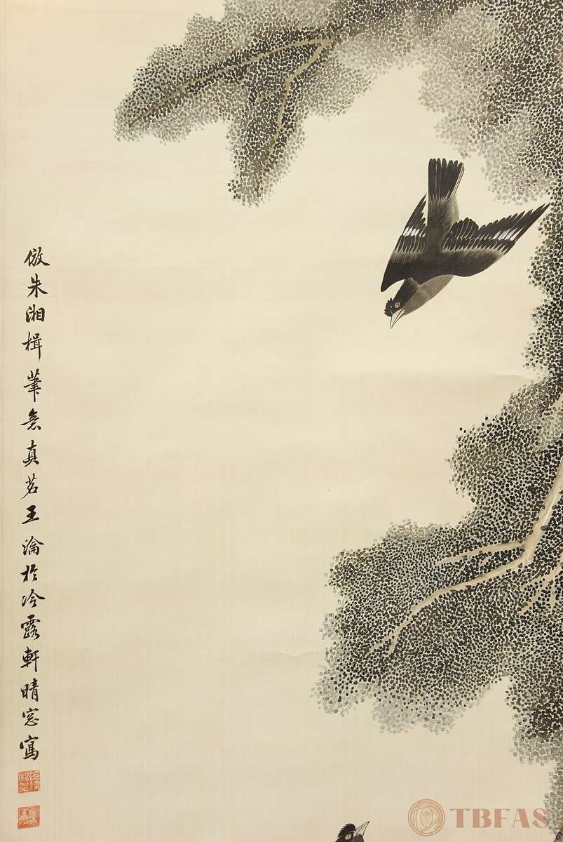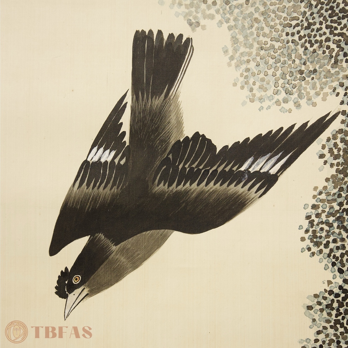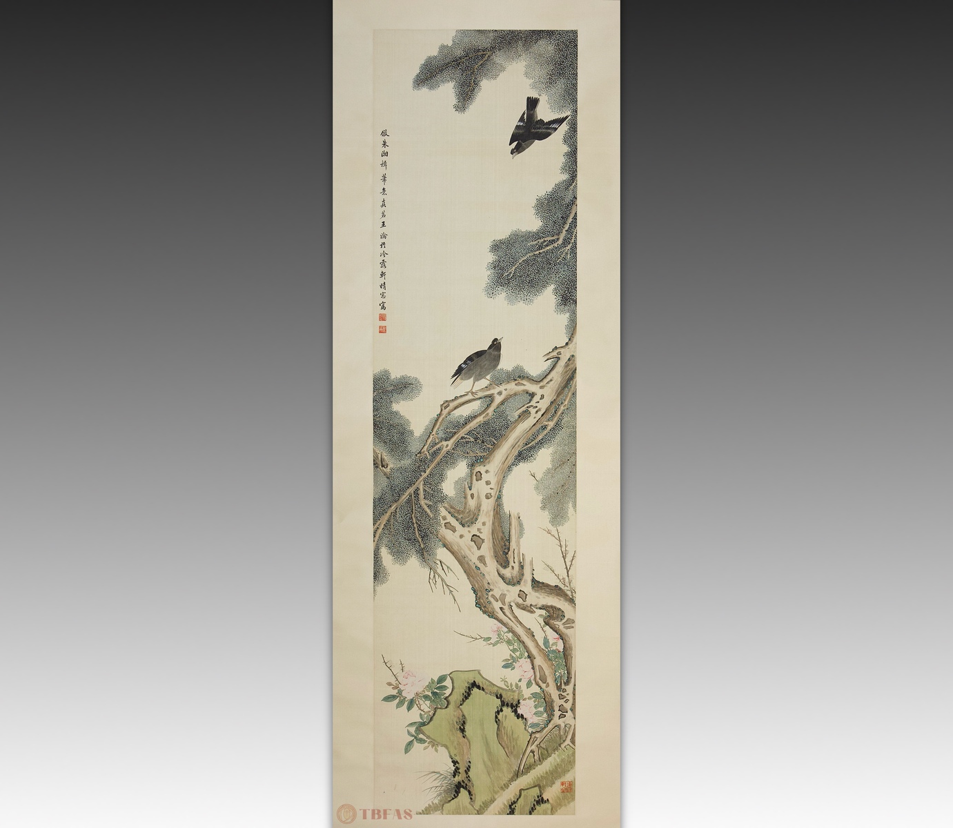 花鸟。20世纪。水墨设色绢本立轴。质优。