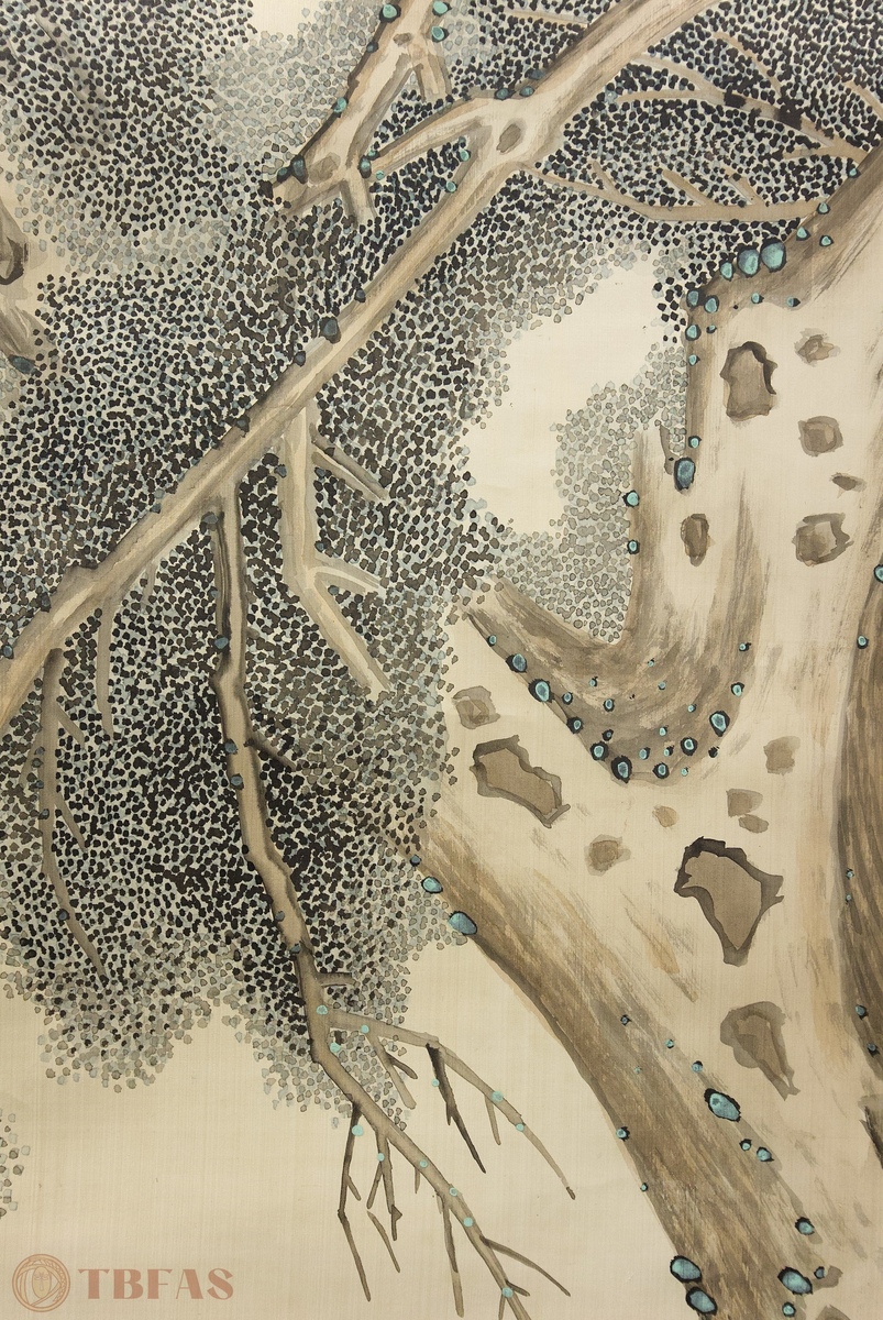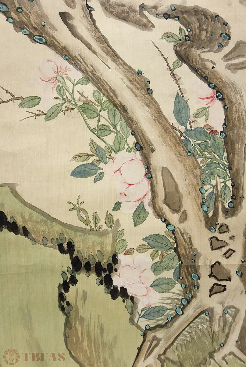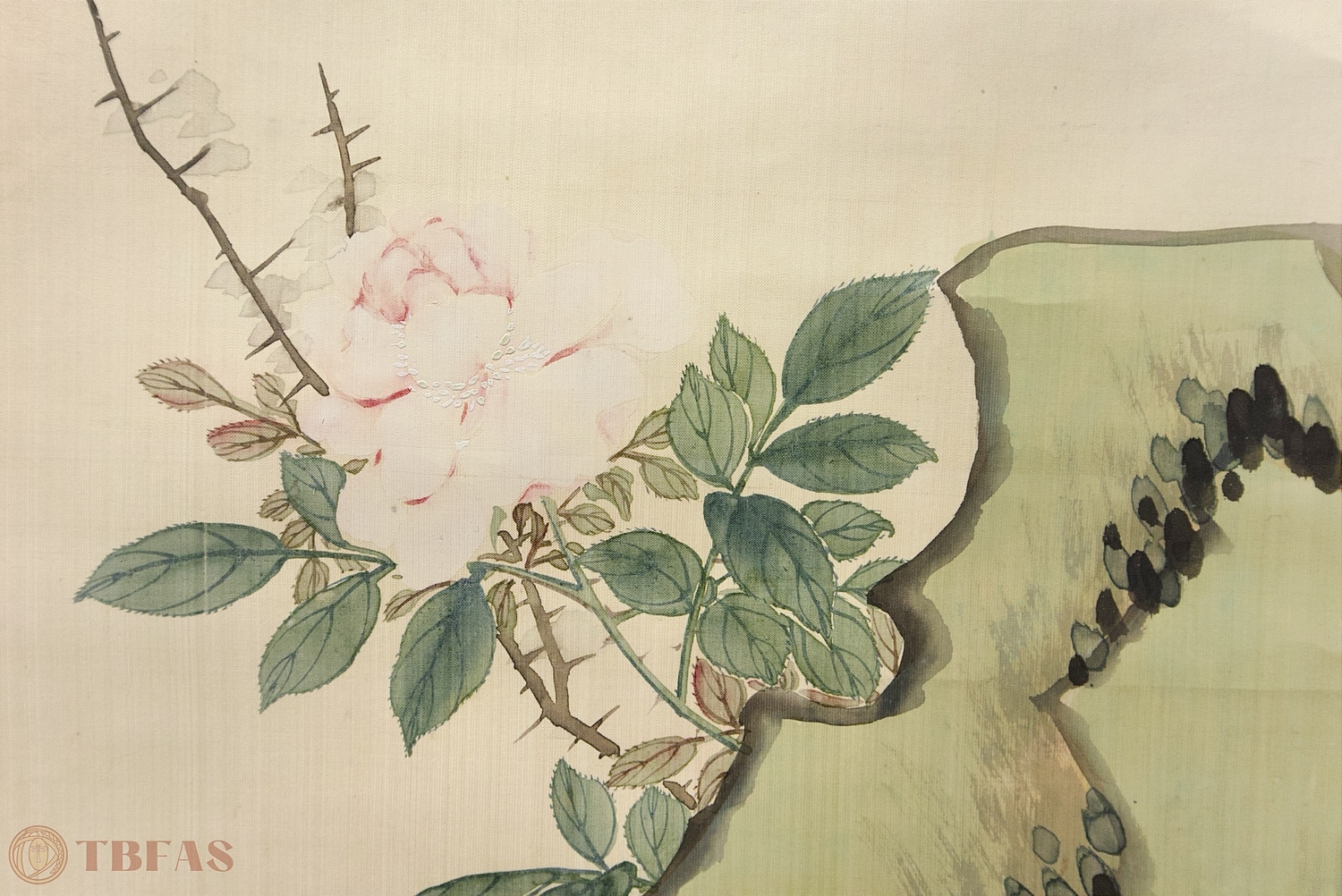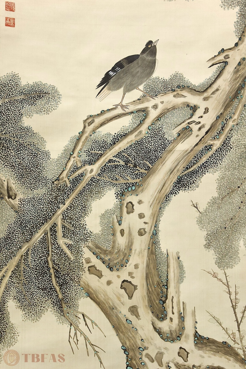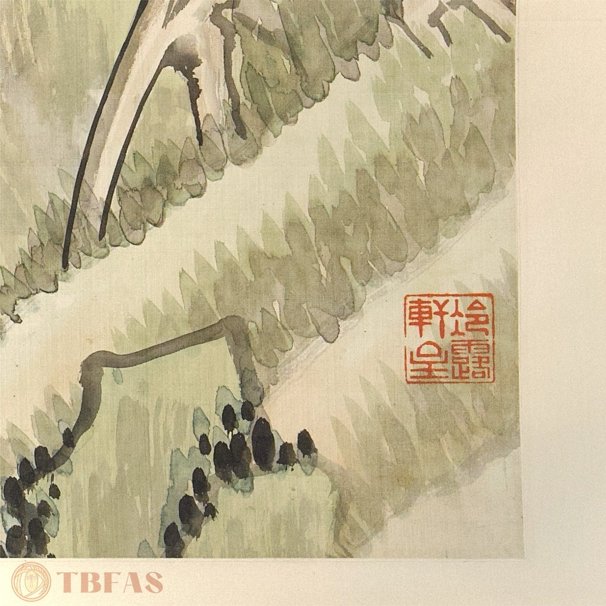 花鸟。20世纪。水墨设色绢本立轴。质优。