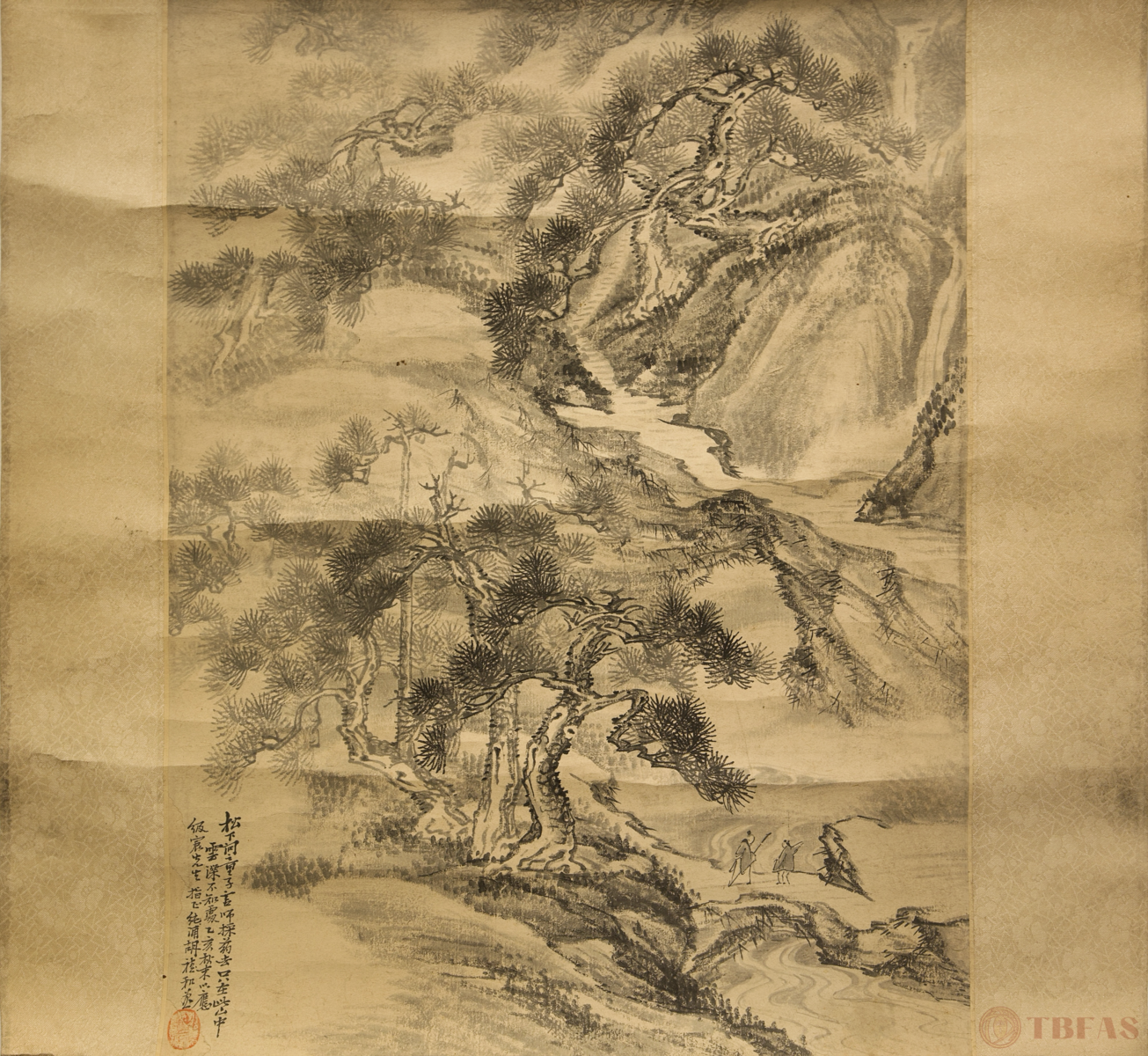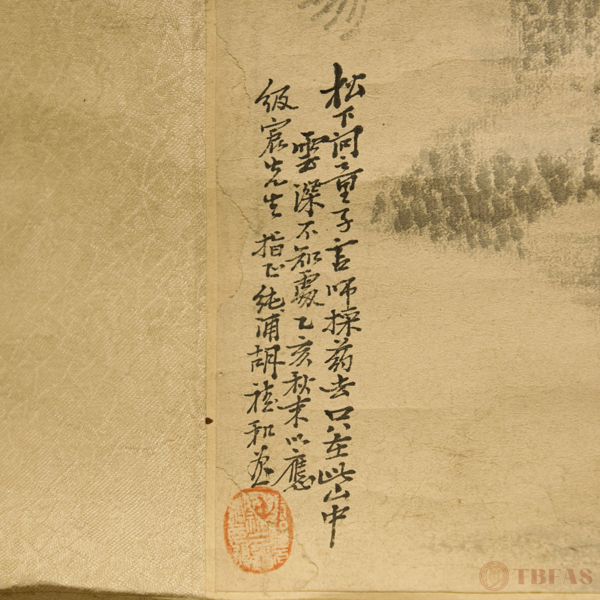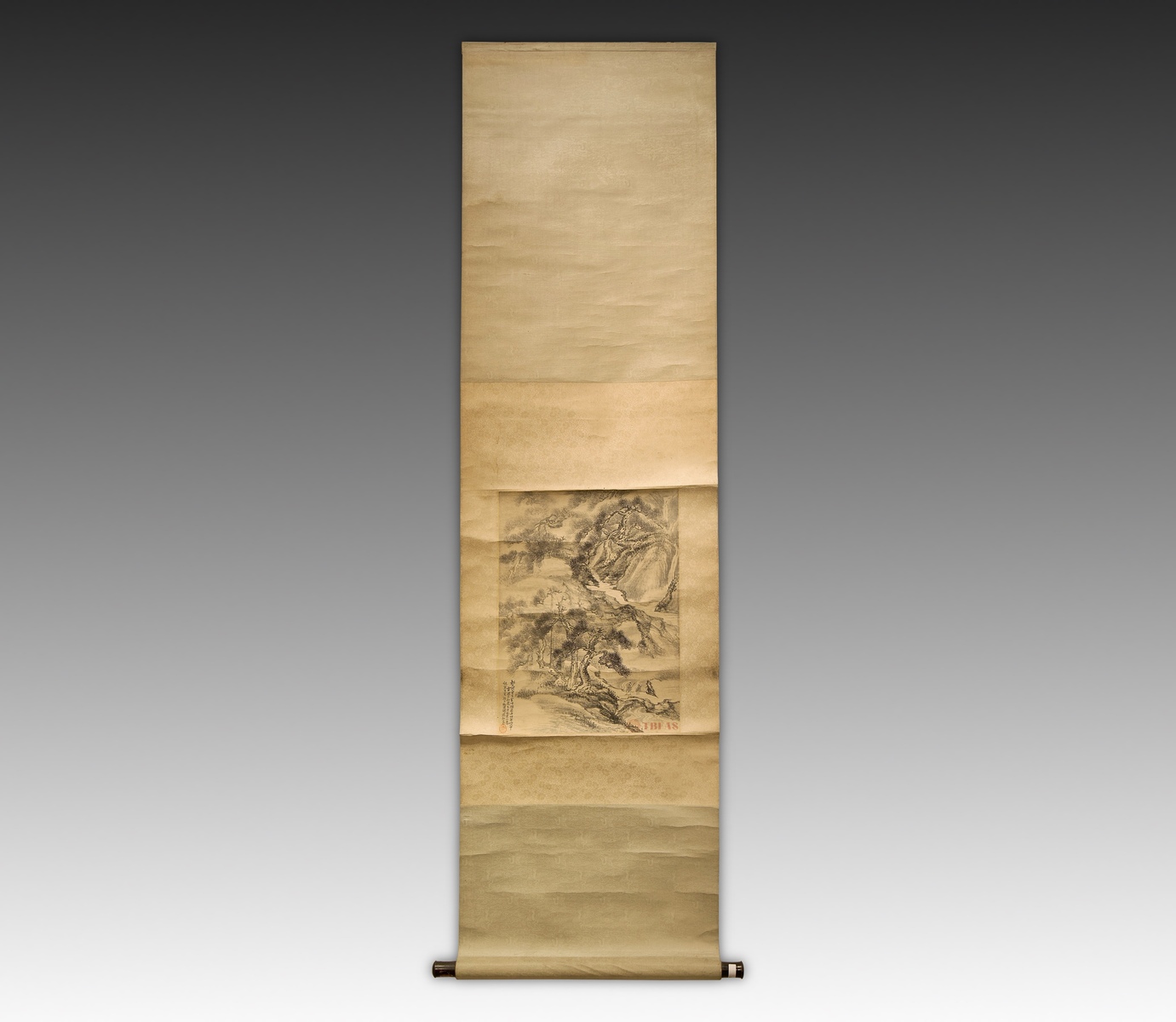 唐詩畫意。水墨山水纸本立軸。清代。品相良好。