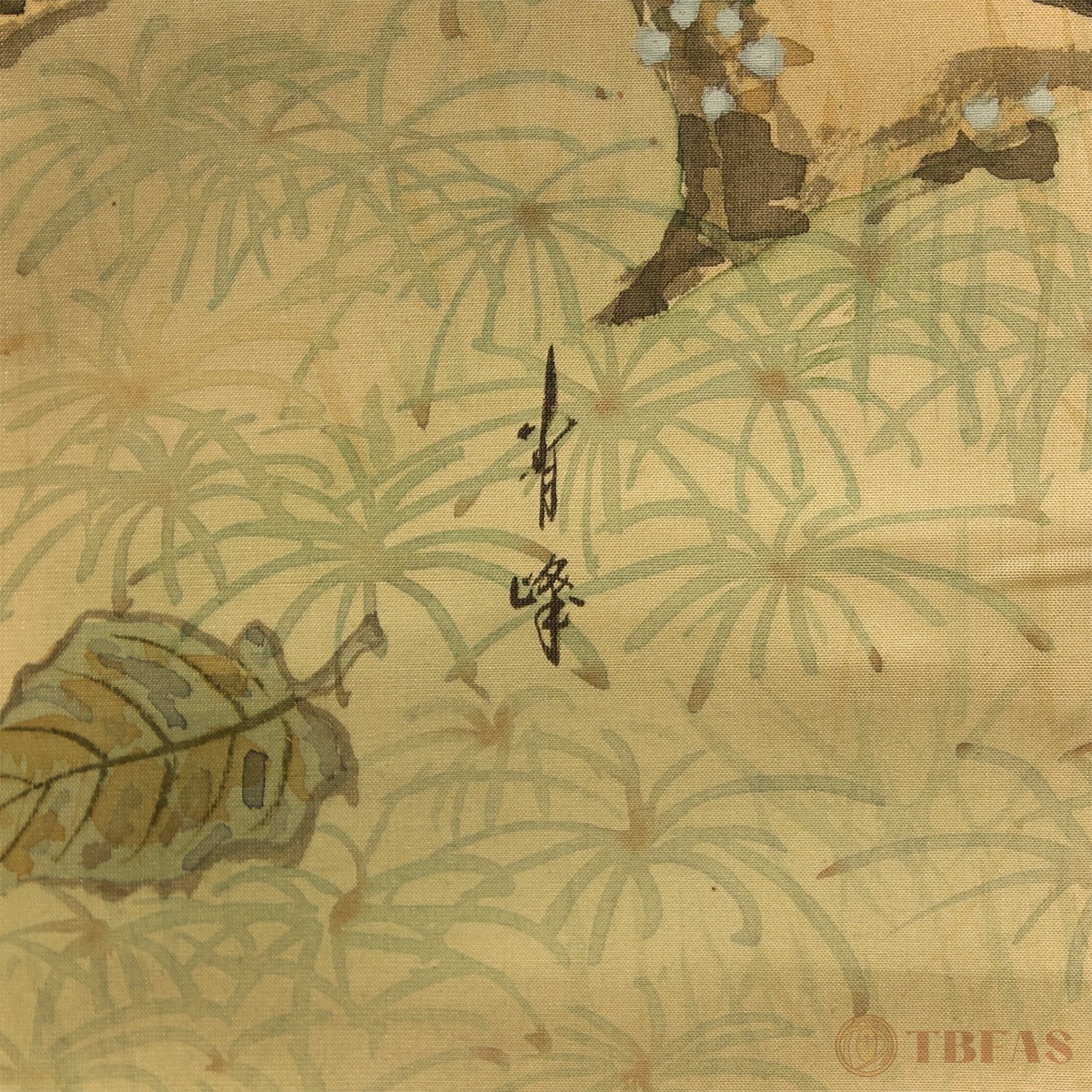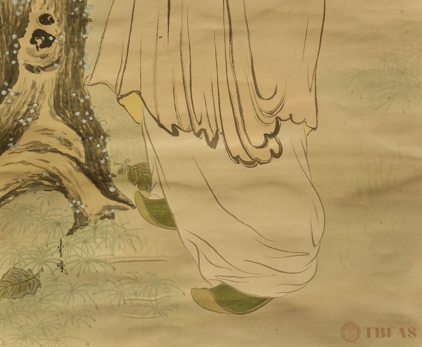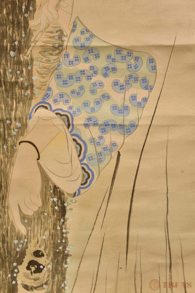 驯猴的女人。大正 – 昭和。设色绢本立轴。品相优轻微虫蛀。