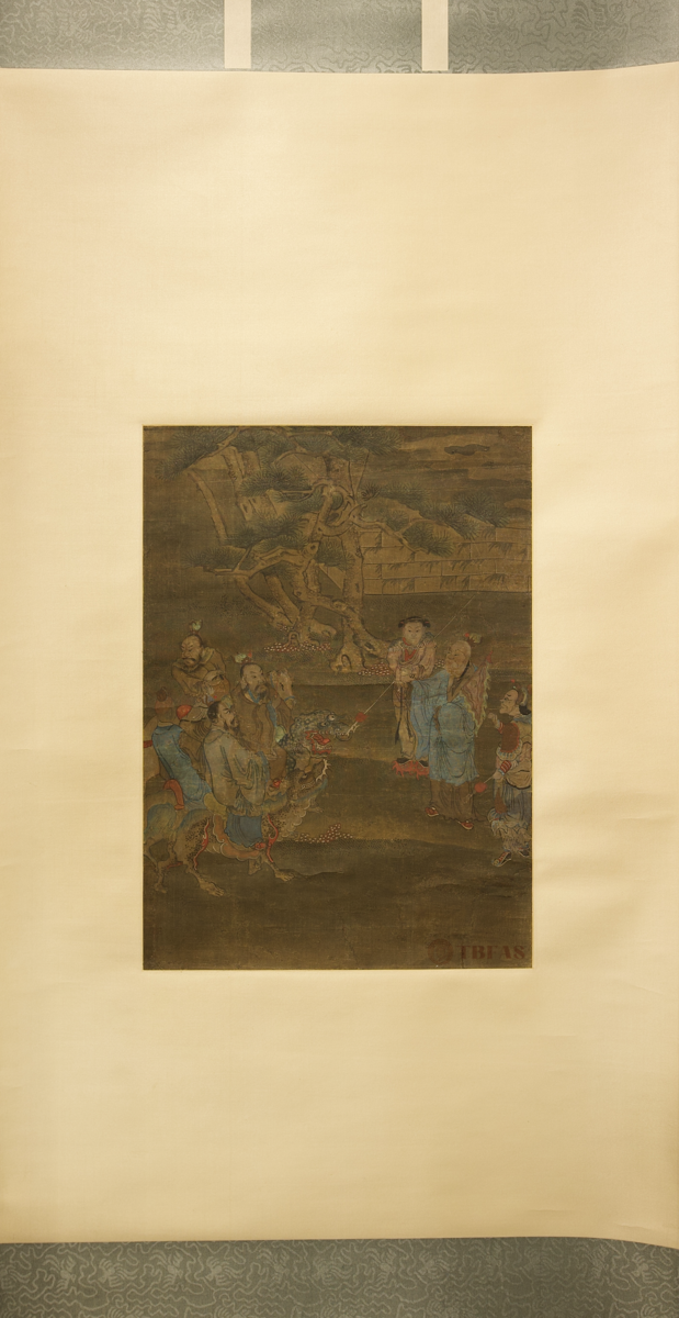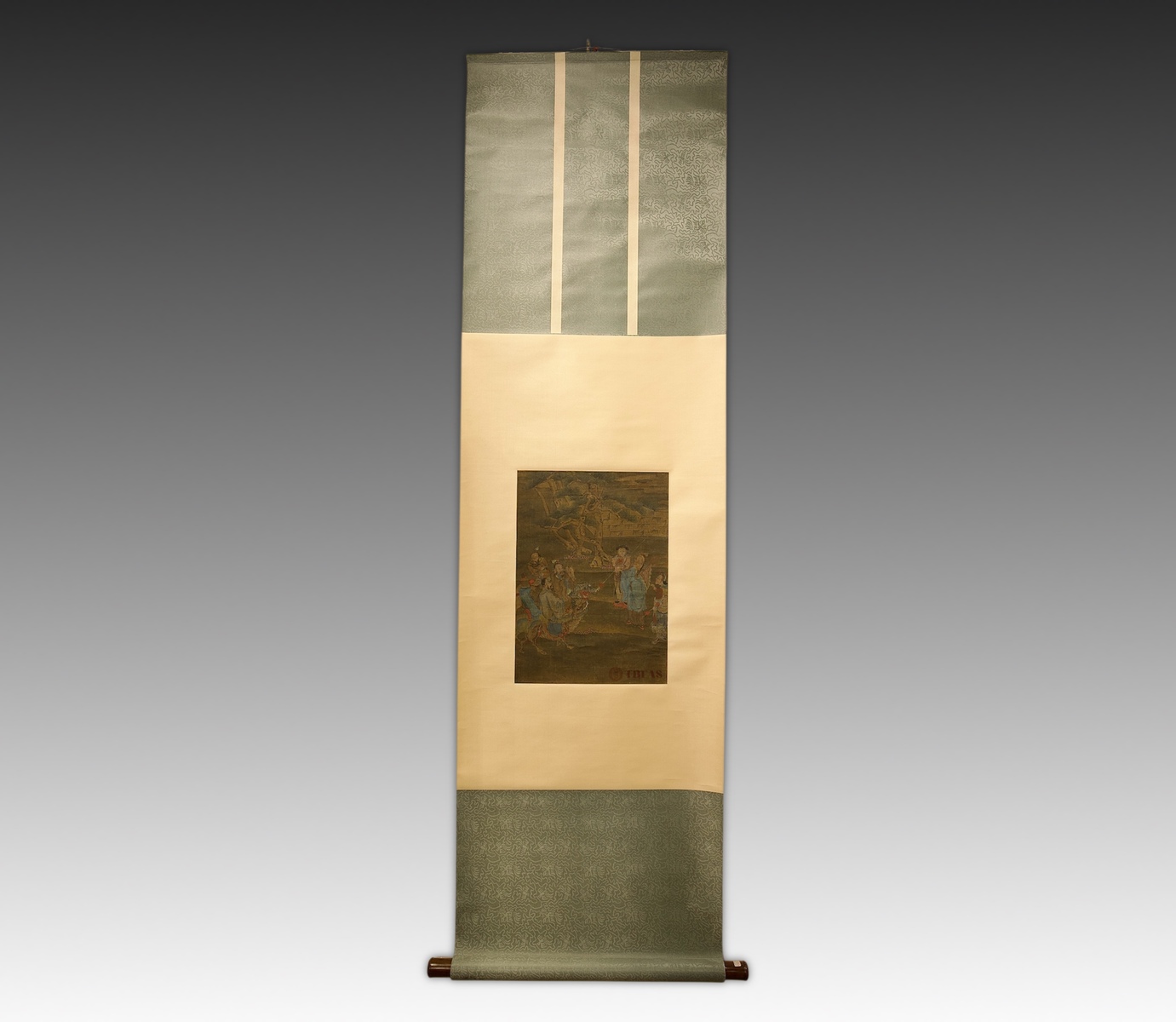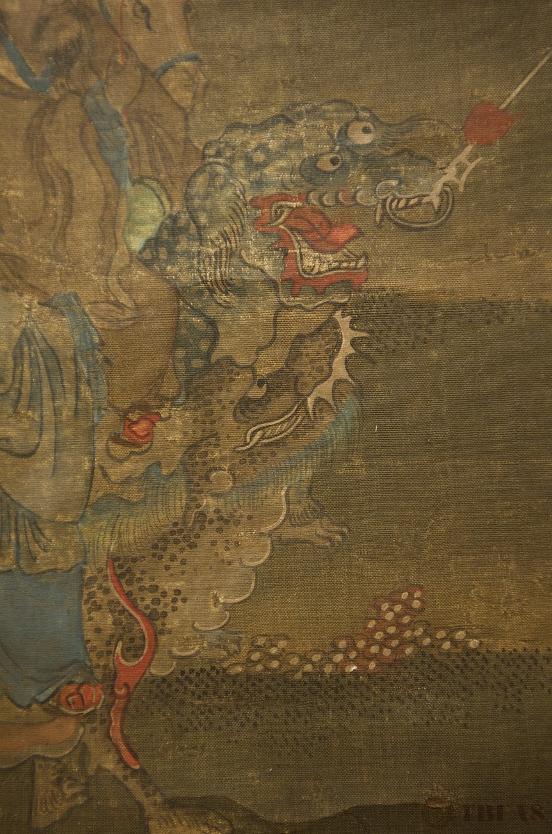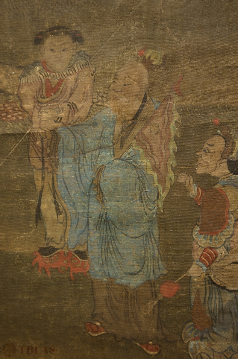 In this scroll, we see the white-haired General of the Zhou on the right confronting the General of the Shang on the left before battle.
