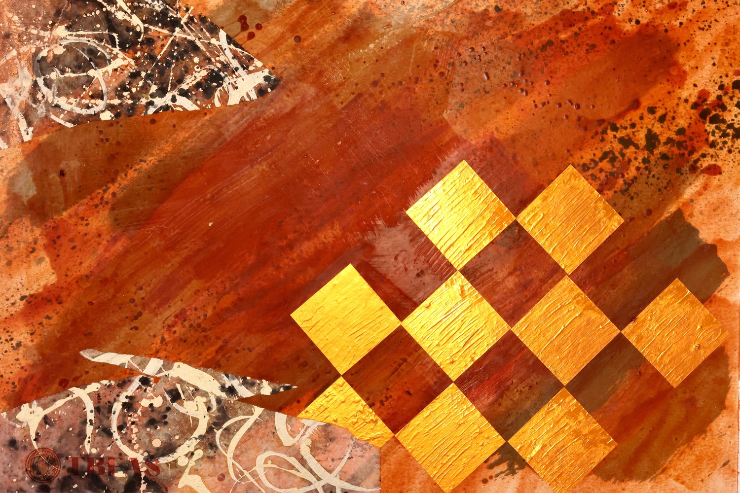 Acrylics/ collage/ poured ink/ thick art paper panel