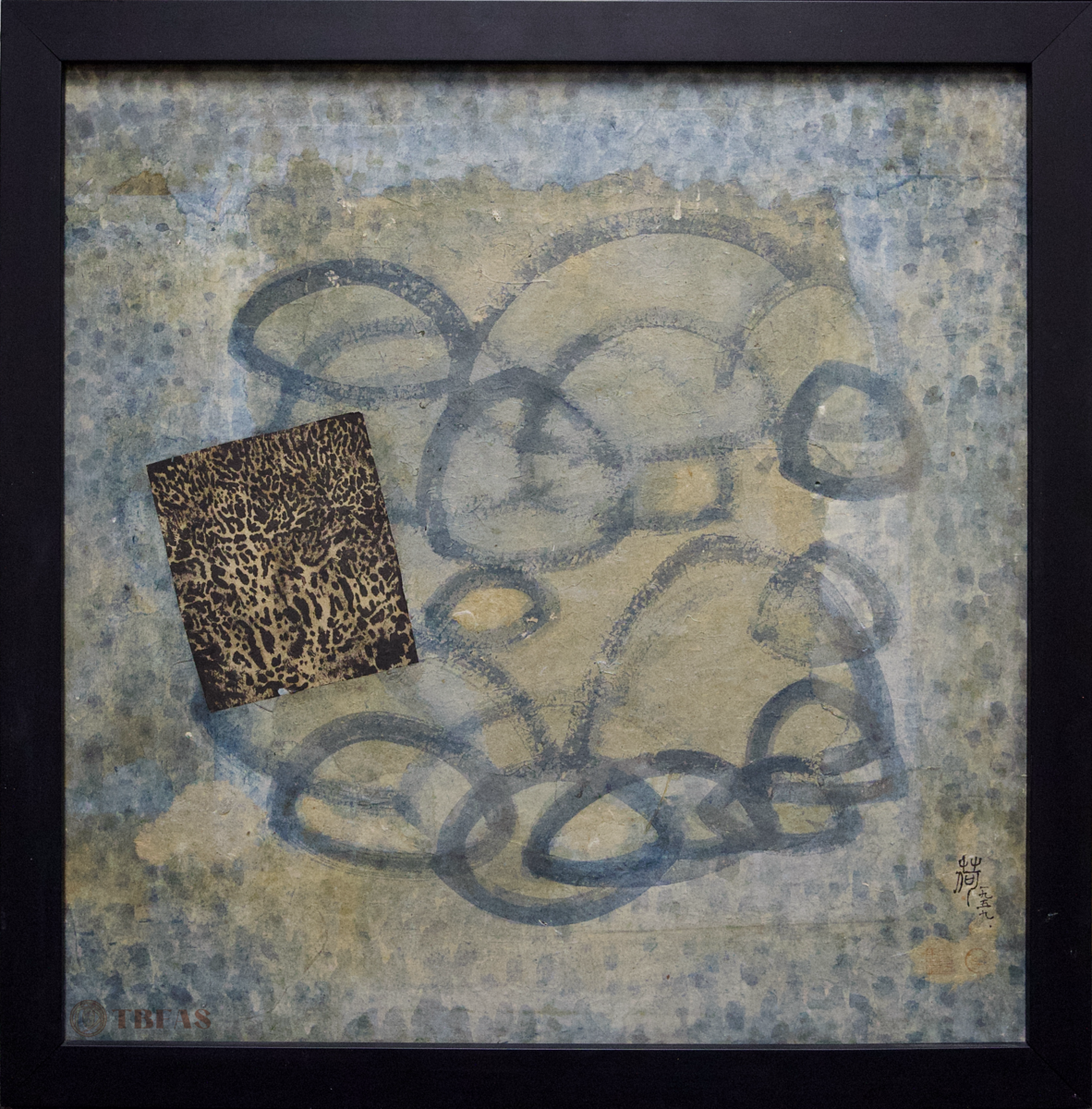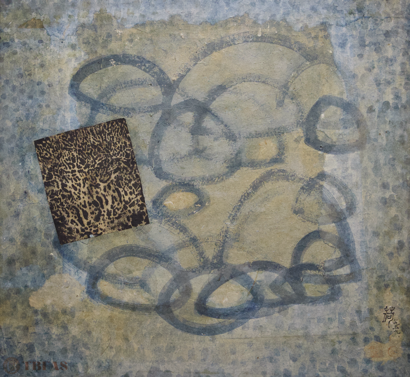 Tseng’s artwork may look like abstract shapes painted with Chinese ink and color on paper, using traditional brush strokes and dots, without clear subjects. But upon closer look, you can spot landscapes and other subtle shapes hidden within the misty designs. In the 1950s, she began experimenting with layering gold or silver foil, which she called “dsui.” Her work was part of a traveling exhibition organized by the Smithsonian Institution and was displayed in various museums and art centers across the United States in 1955.