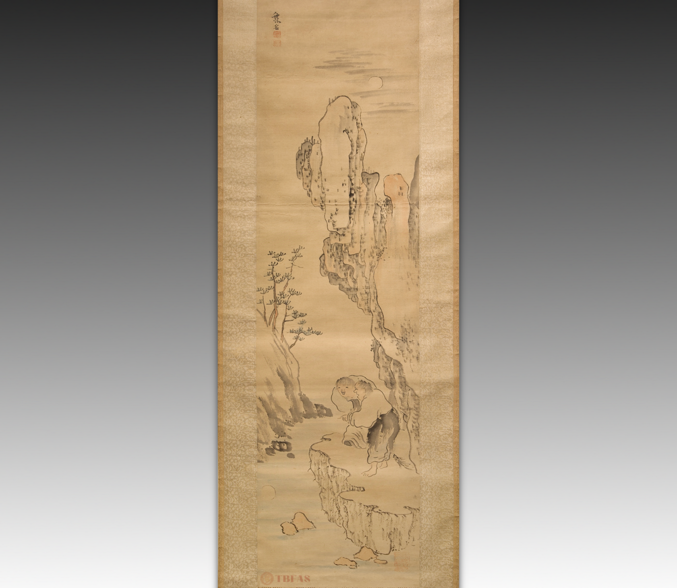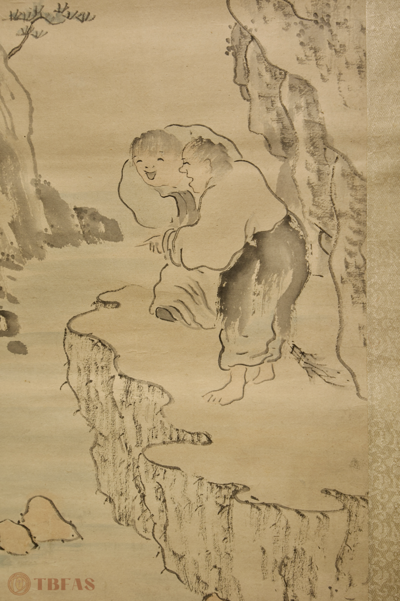 寒山拾得。江户(18世纪)。水墨设色纸本立轴。品相优。