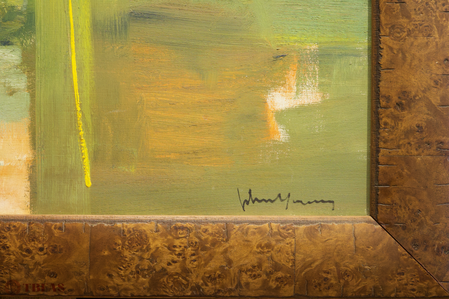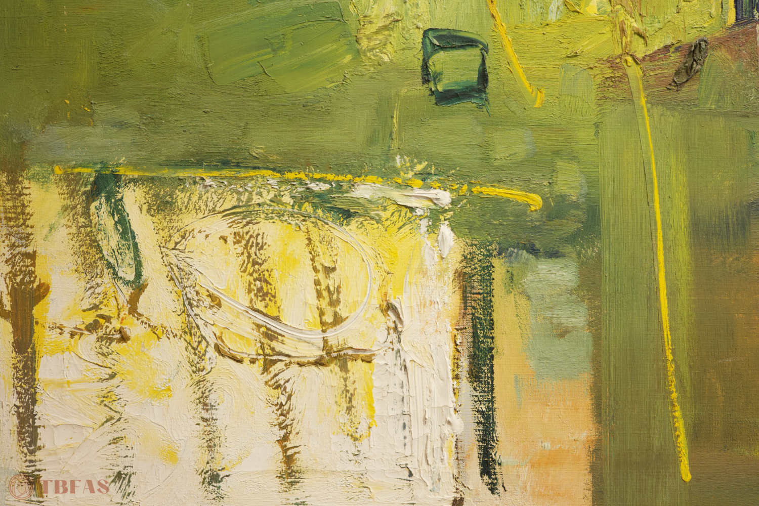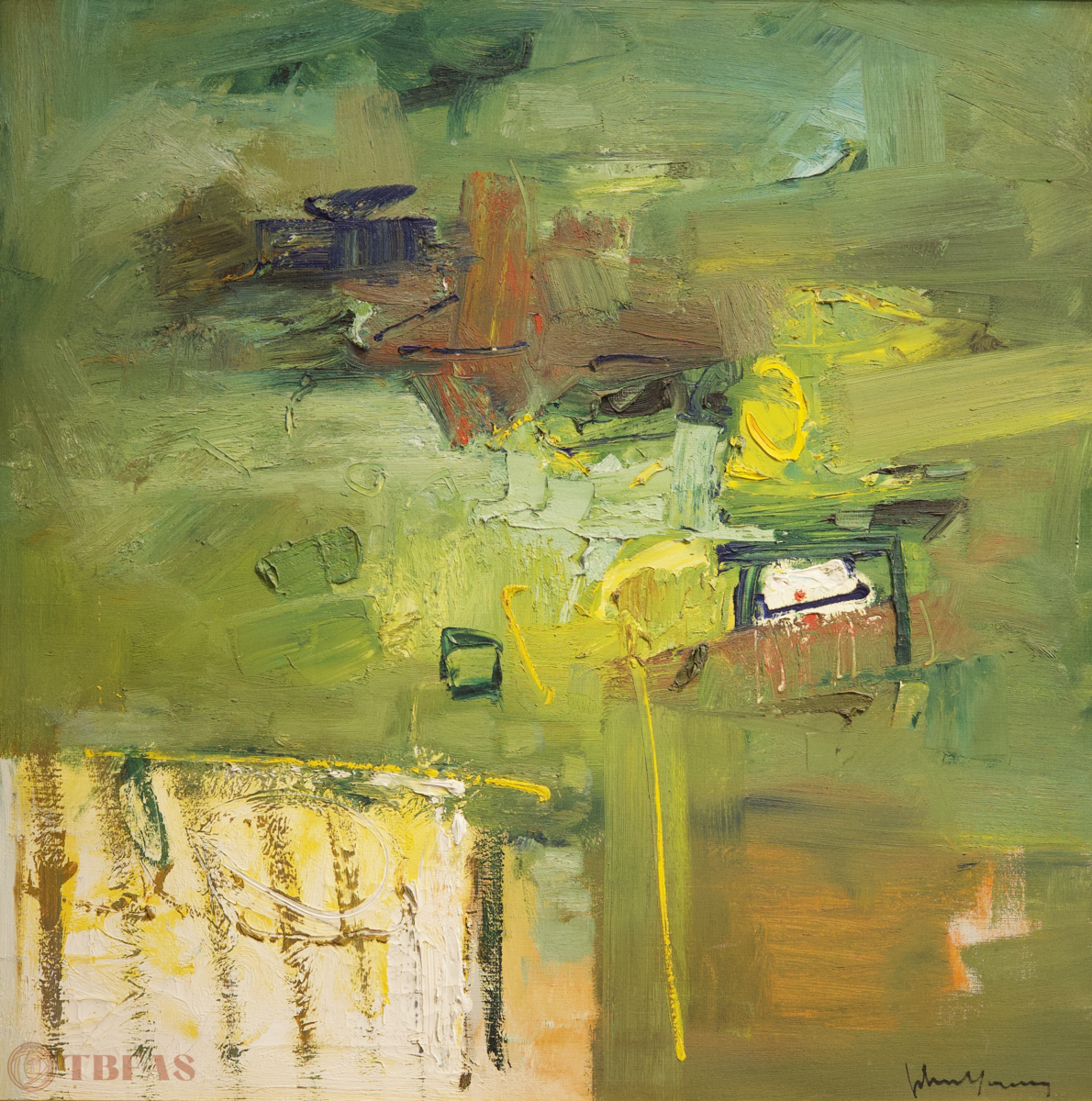 Nice abstract in greens and yellows. Circa 1970s.