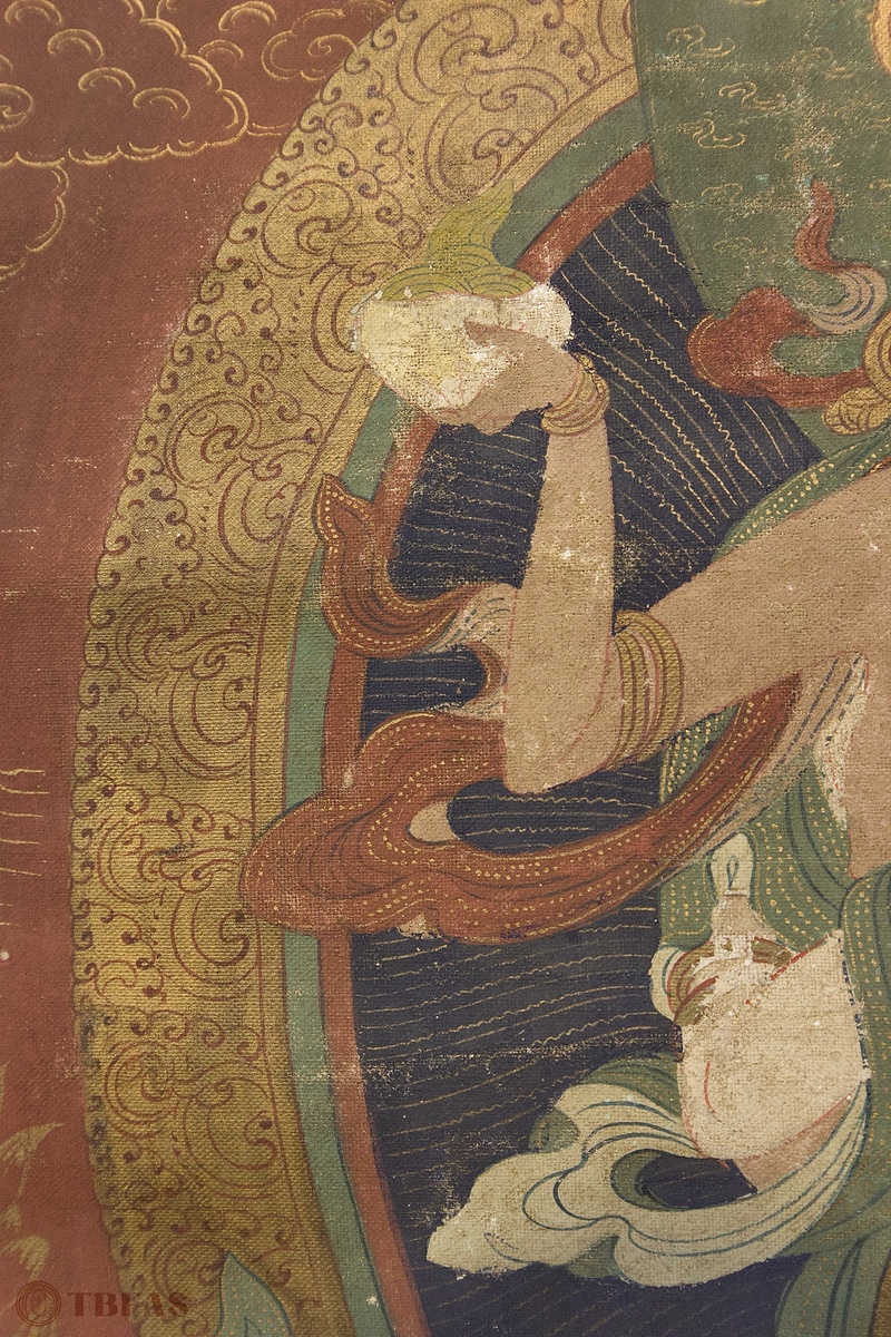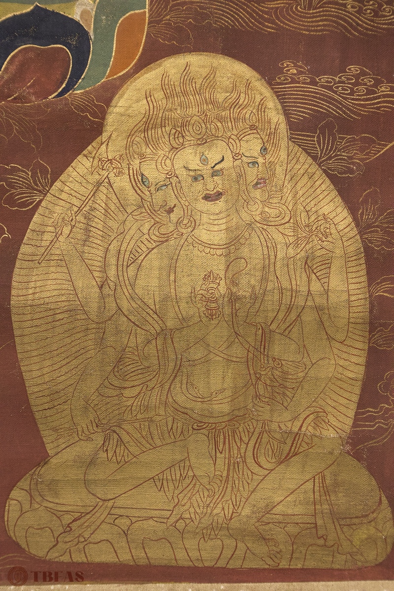 唐卡,佛教挂像。20世纪。设色绢本立轴。质优。